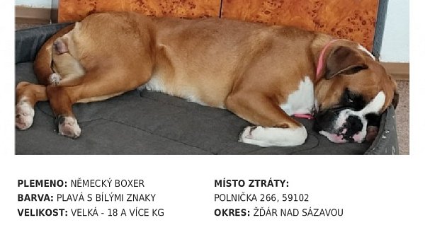V obci Polnička, okr. Žďár nad Sázavou se 24.11. ztratila 9 měsíců stará fenka německého boxera jménem Vexi!!!