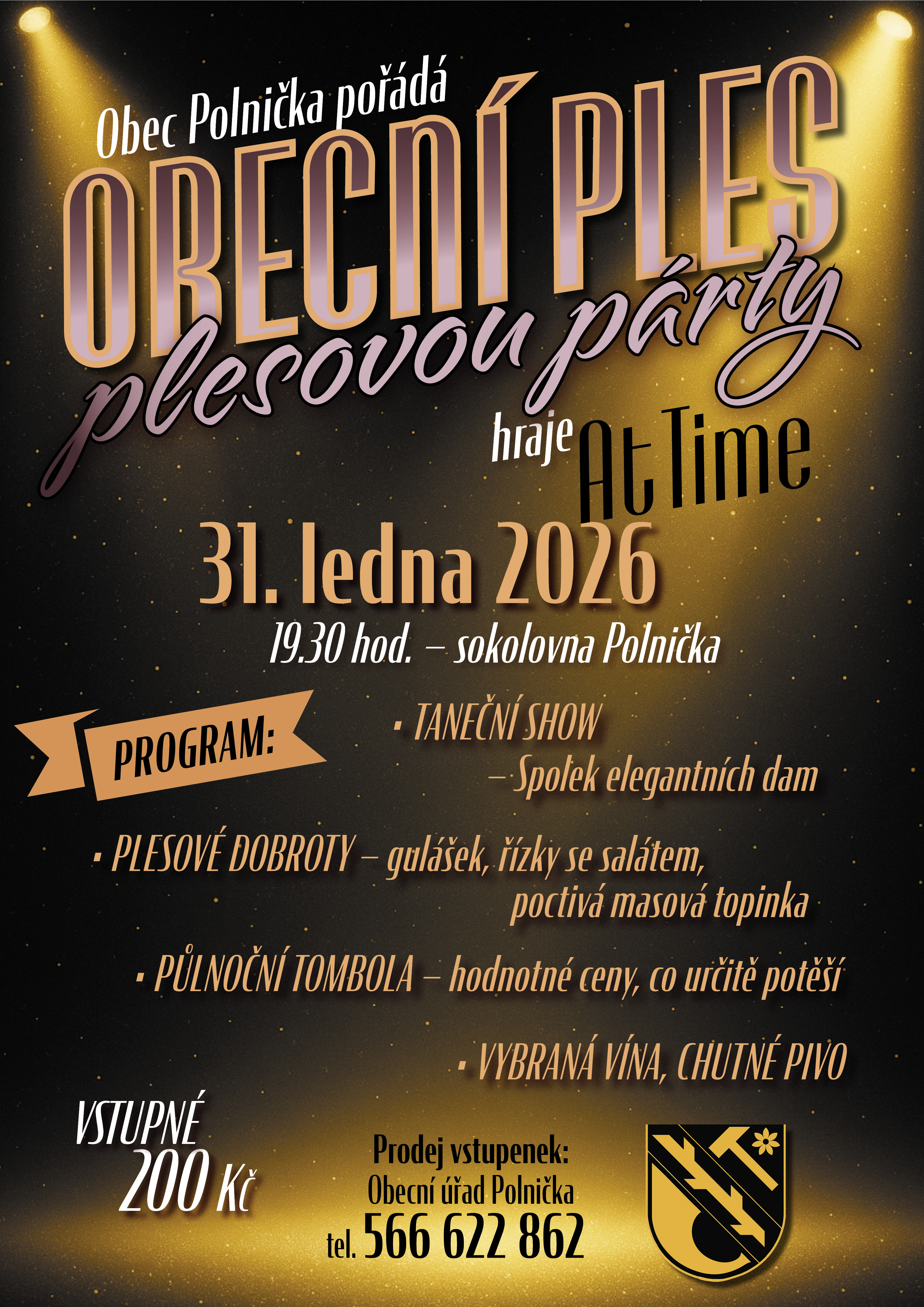 Srdečně vás zveme na Obecní ples konaný 31.1.2026 od 19:30 hod.
