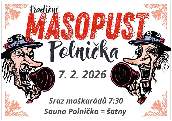 Sraz maškarádů v 7:30 hod. v šatnách Sauny Polnička.